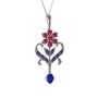 Rodolit garnet, ametist ve lab safir 14 ayar beyaz altın kolye (40 cm beyaz altın rolo zincir)