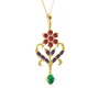 Rodolit garnet, ametist ve yeşil kuvars 8 ayar altın kolye (40 cm gümüş rolo zincir)