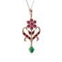 Rodolit garnet, garnet ve yeşil kuvars 14 ayar rose altın kolye (40 cm gümüş rolo zincir)