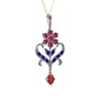 Rodolit garnet, lab safir ve garnet 925 ayar gümüş kolye (40 cm altın rolo zincir)
