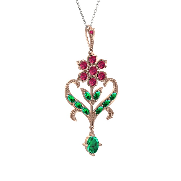 Rodolit garnet ve yeşil kuvars 14 ayar rose altın kolye (40 cm beyaz altın rolo zincir)
