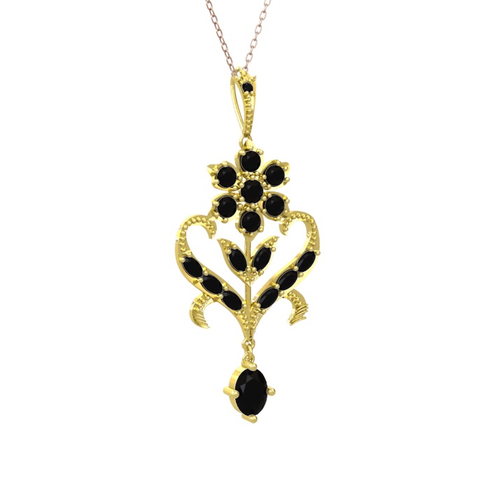 Siyah zirkon 8 ayar altın kolye (40 cm rose altın rolo zincir)