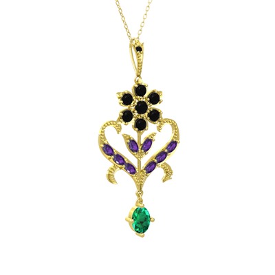 Siyah zirkon, ametist ve yeşil kuvars 14 ayar altın kolye (40 cm altın rolo zincir)