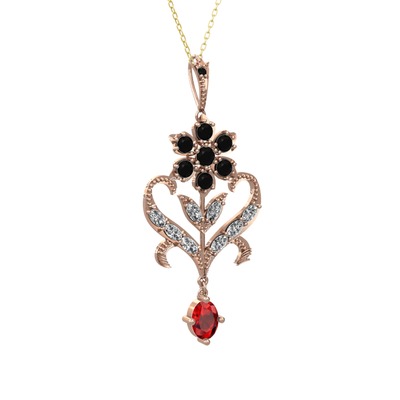 Siyah zirkon, beyaz zirkon ve garnet 8 ayar rose altın kolye (40 cm altın rolo zincir)