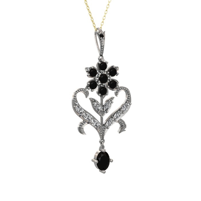Siyah zirkon ve beyaz zirkon 925 ayar gümüş kolye (40 cm altın rolo zincir)