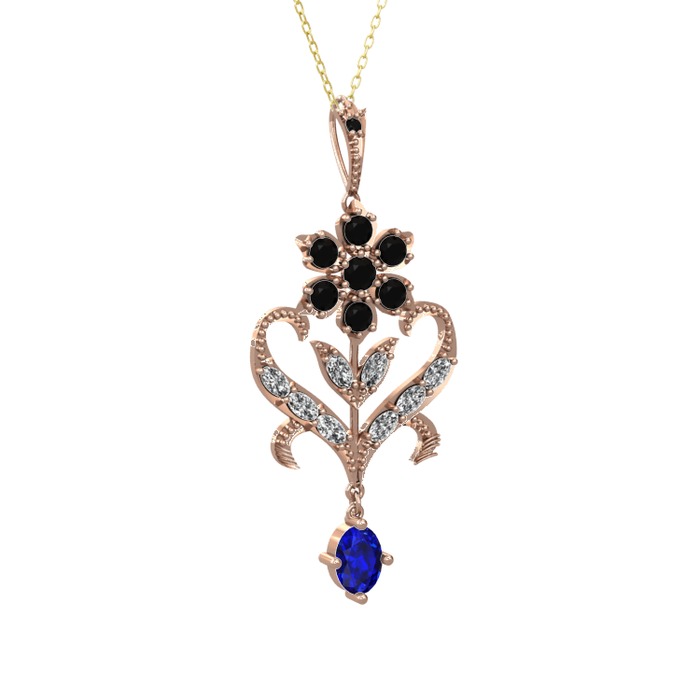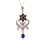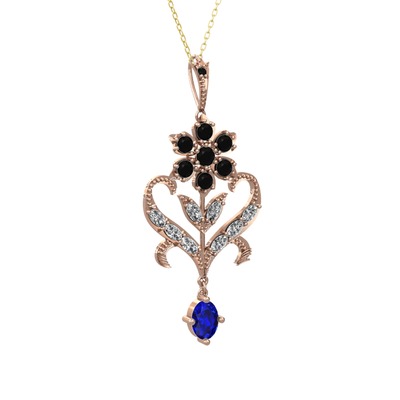 Siyah zirkon, beyaz zirkon ve lab safir 8 ayar rose altın kolye (40 cm altın rolo zincir)