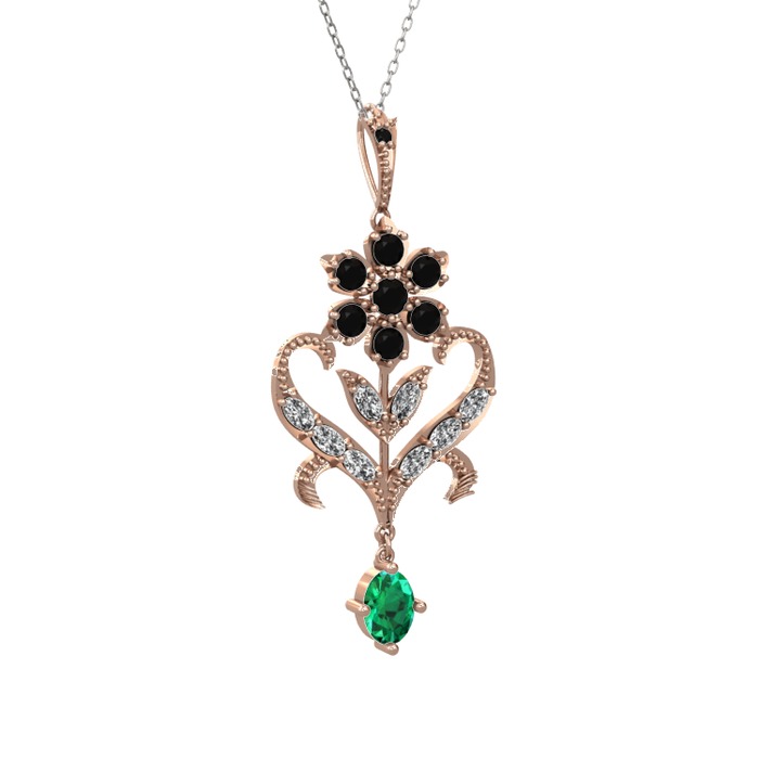 Siyah zirkon, beyaz zirkon ve yeşil kuvars 14 ayar rose altın kolye (40 cm beyaz altın rolo zincir)