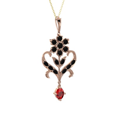 Siyah zirkon ve garnet 8 ayar rose altın kolye (40 cm altın rolo zincir)