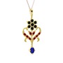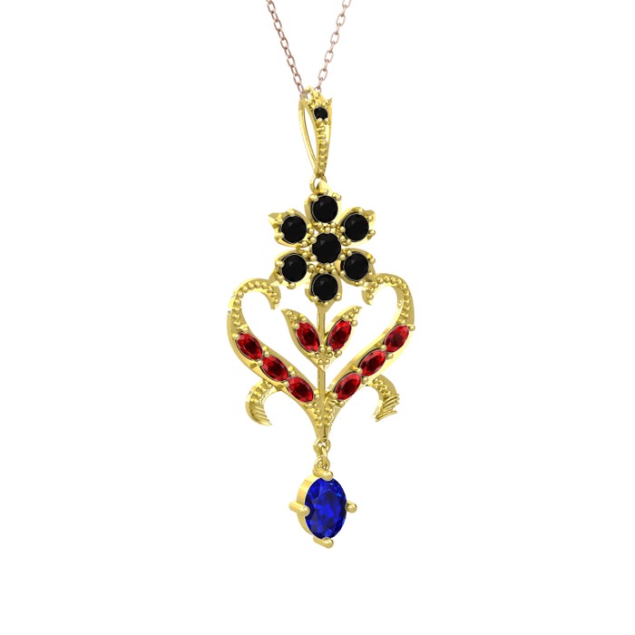 Siyah zirkon, garnet ve lab safir 14 ayar altın kolye (40 cm rose altın rolo zincir)