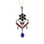 Siyah zirkon, garnet ve lab safir 8 ayar beyaz altın kolye (40 cm altın rolo zincir)