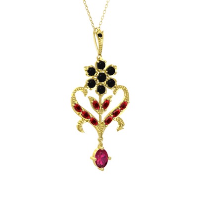 Siyah zirkon, garnet ve rodolit garnet 14 ayar altın kolye (40 cm altın rolo zincir)