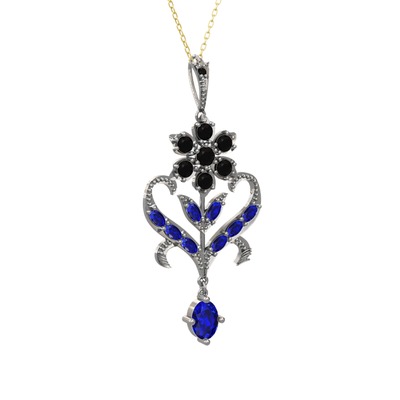 Siyah zirkon ve lab safir 8 ayar beyaz altın kolye (40 cm gümüş rolo zincir)