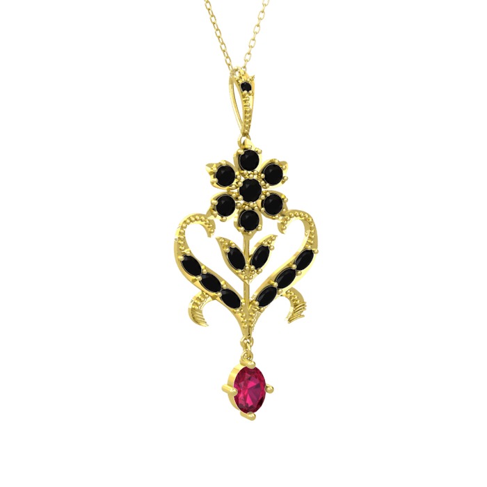 Siyah zirkon ve rodolit garnet 8 ayar altın kolye (40 cm gümüş rolo zincir)