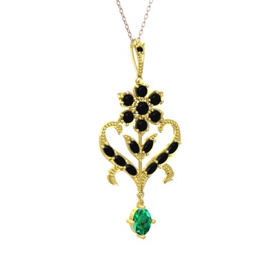 Siyah zirkon ve yeşil kuvars 14 ayar altın kolye (40 cm rose altın rolo zincir)