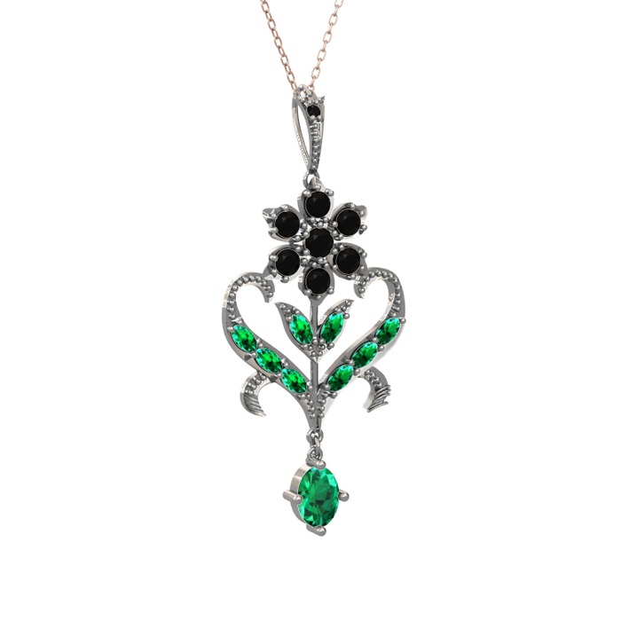 Siyah zirkon ve yeşil kuvars 925 ayar gümüş kolye (40 cm rose altın rolo zincir)