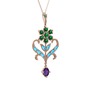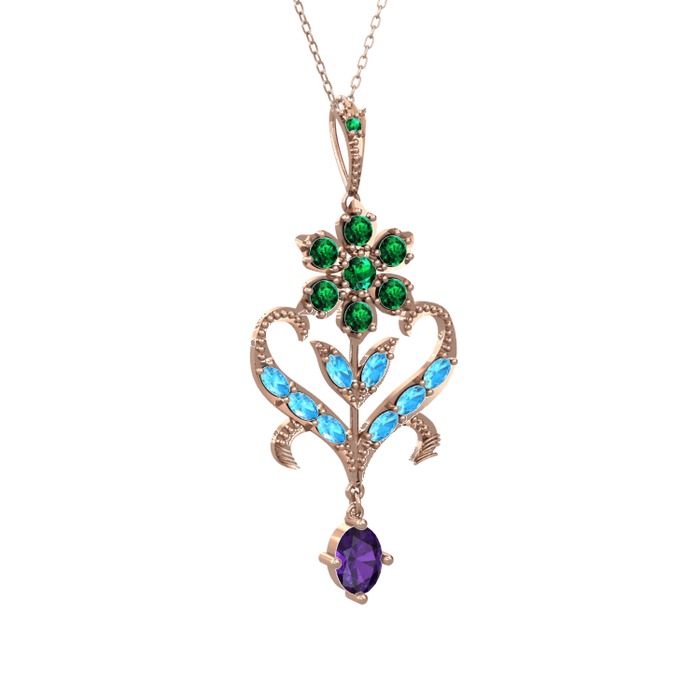 Yeşil kuvars, akuamarin ve ametist 14 ayar rose altın kolye (40 cm rose altın rolo zincir)