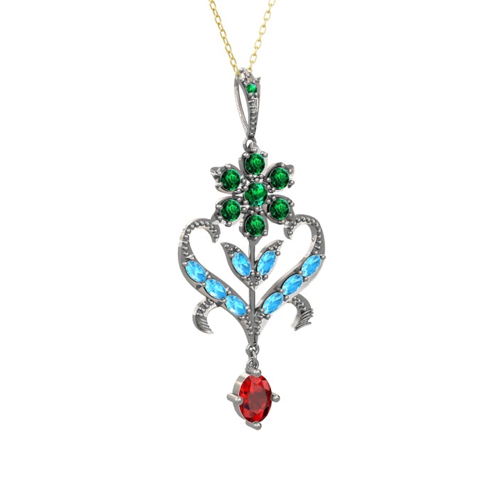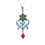 Yeşil kuvars, akuamarin ve garnet 14 ayar beyaz altın kolye (40 cm gümüş rolo zincir)