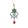 Yeşil kuvars, akuamarin ve garnet 8 ayar rose altın kolye (40 cm gümüş rolo zincir)