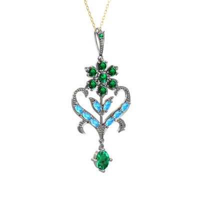 Yeşil kuvars ve akuamarin 925 ayar gümüş kolye (40 cm gümüş rolo zincir)