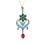 Yeşil kuvars, akuamarin ve rodolit garnet 14 ayar beyaz altın kolye (40 cm altın rolo zincir)