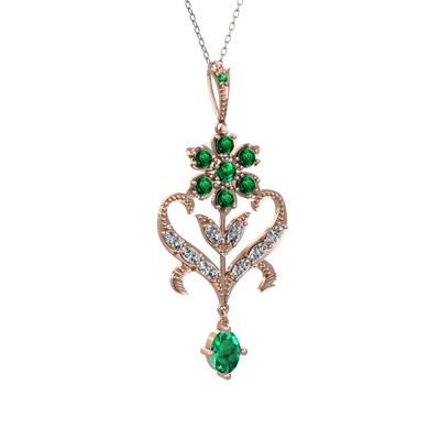 Yeşil kuvars ve beyaz zirkon 14 ayar rose altın kolye (40 cm beyaz altın rolo zincir)