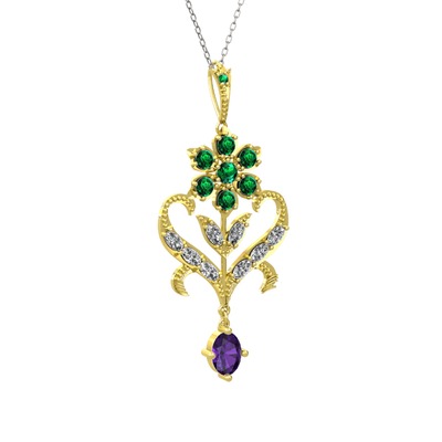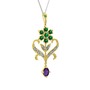 Yeşil kuvars, beyaz zirkon ve ametist 925 ayar altın kaplama gümüş kolye (40 cm gümüş rolo zincir)