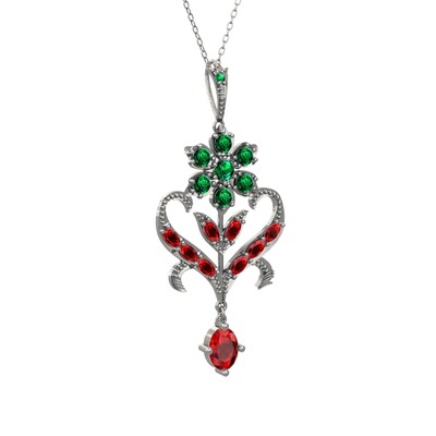 Yeşil kuvars ve garnet 925 ayar gümüş kolye (40 cm beyaz altın rolo zincir)
