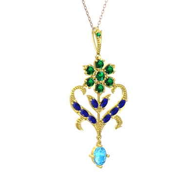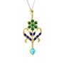 Yeşil kuvars, lab safir ve akuamarin 925 ayar altın kaplama gümüş kolye (40 cm gümüş rolo zincir)