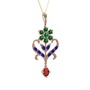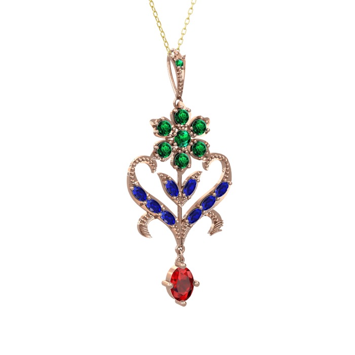 Yeşil kuvars, lab safir ve garnet 925 ayar rose altın kaplama gümüş kolye (40 cm gümüş rolo zincir)