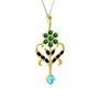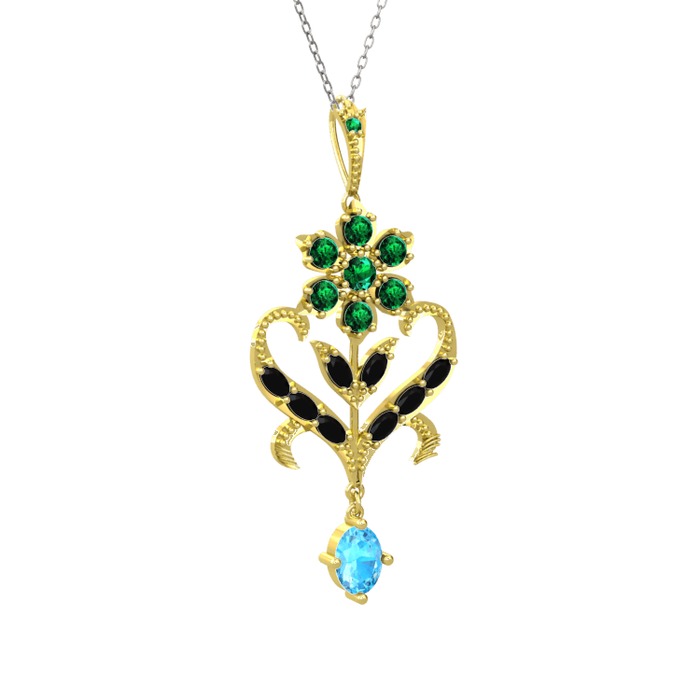 Yeşil kuvars, siyah zirkon ve akuamarin 8 ayar altın kolye (40 cm beyaz altın rolo zincir)