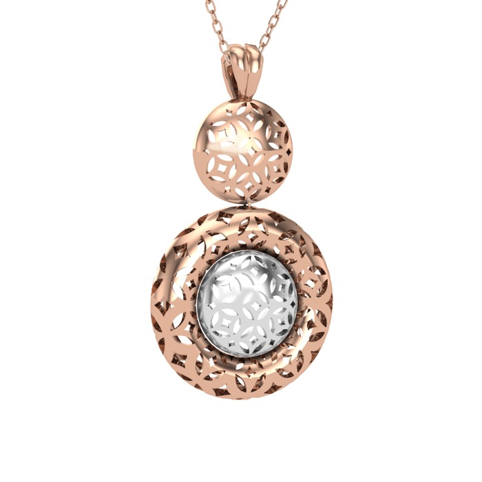 Adinkra Kolye - 18 ayar rose altın kolye (40 cm gümüş rolo zincir)