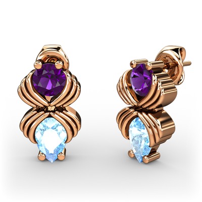 Akuamarin ve ametist 14 ayar rose altın küpe
