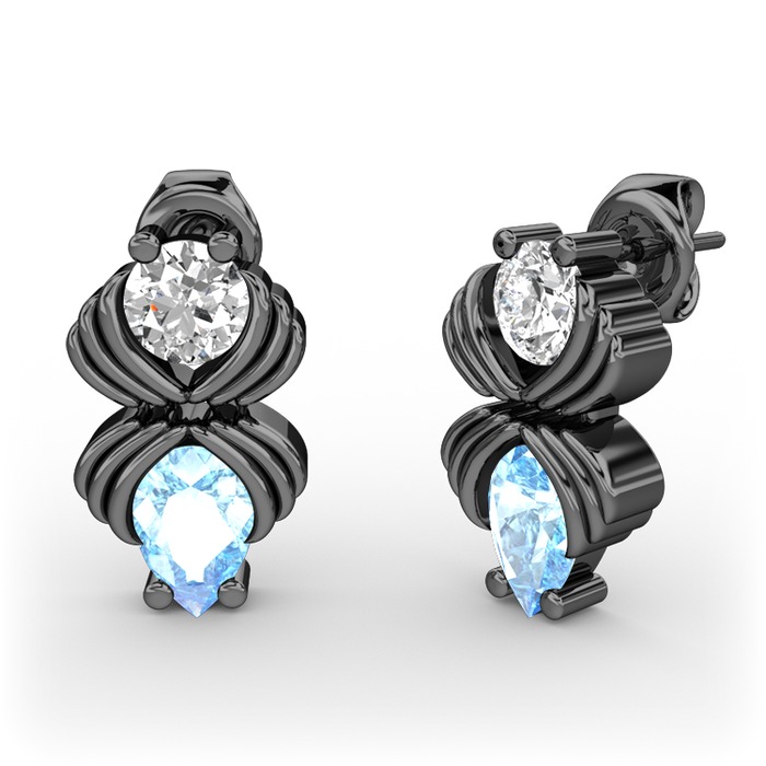 Akuamarin ve beyaz zirkon 925 ayar siyah rodyum kaplama gümüş küpe