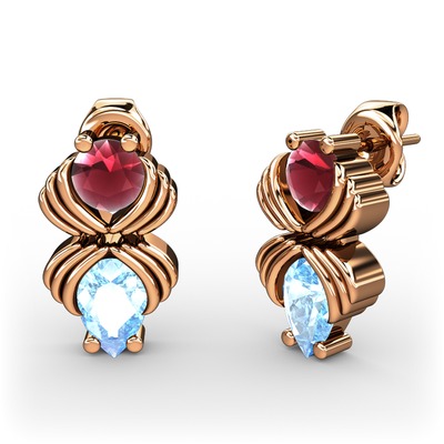 Akuamarin ve kök yakut 14 ayar rose altın küpe