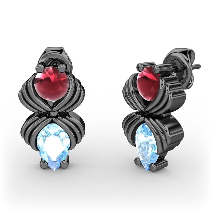 Akuamarin ve kök yakut 925 ayar siyah rodyum kaplama gümüş küpe