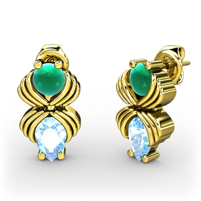 Akuamarin ve kök zümrüt 18 ayar altın küpe