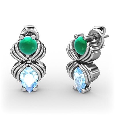 Akuamarin ve kök zümrüt 18 ayar beyaz altın küpe