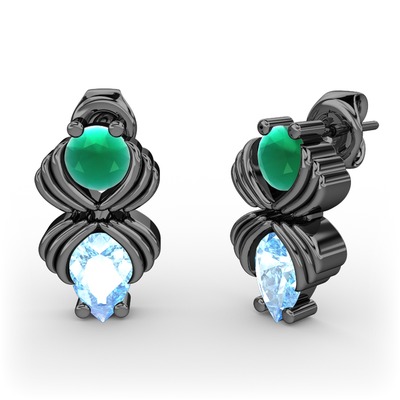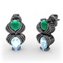 Akuamarin ve kök zümrüt 925 ayar siyah rodyum kaplama gümüş küpe