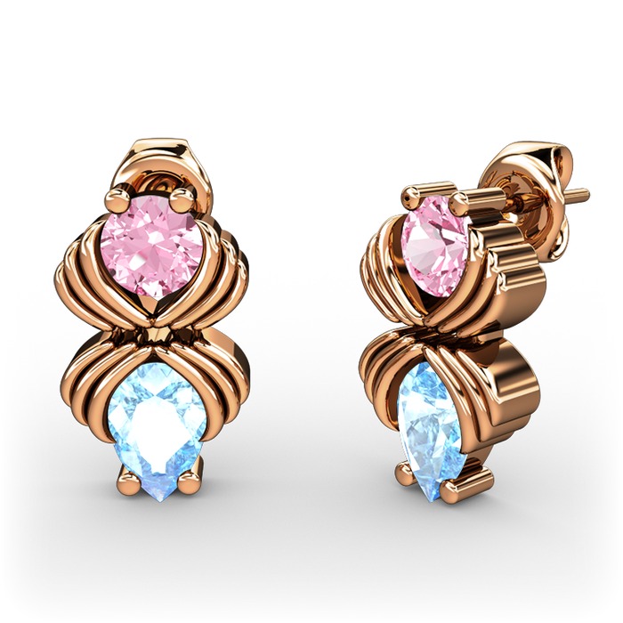 Akuamarin ve pembe kuvars 14 ayar rose altın küpe