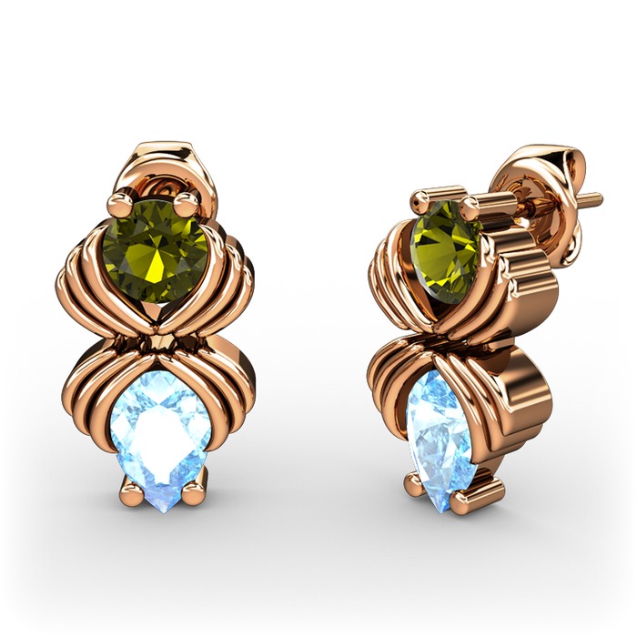 Akuamarin ve peridot 18 ayar rose altın küpe