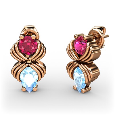 Akuamarin ve rodolit garnet 925 ayar rose altın kaplama gümüş küpe