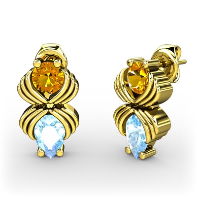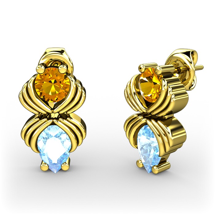 Akuamarin ve sitrin 18 ayar altın küpe
