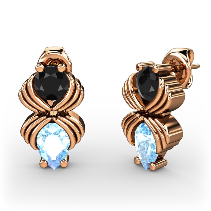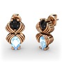 Akuamarin ve siyah zirkon 925 ayar rose altın kaplama gümüş küpe