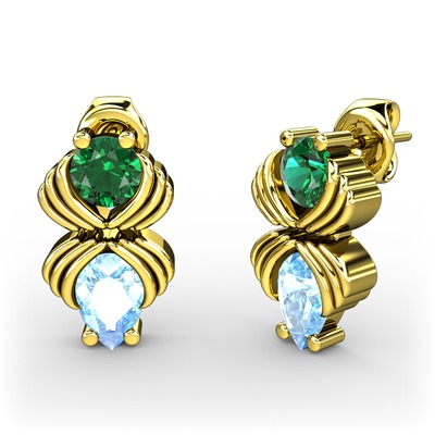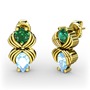 Akuamarin ve yeşil kuvars 14 ayar altın küpe