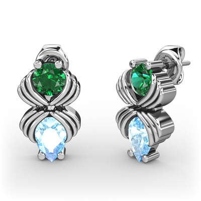 Akuamarin ve yeşil kuvars 18 ayar beyaz altın küpe