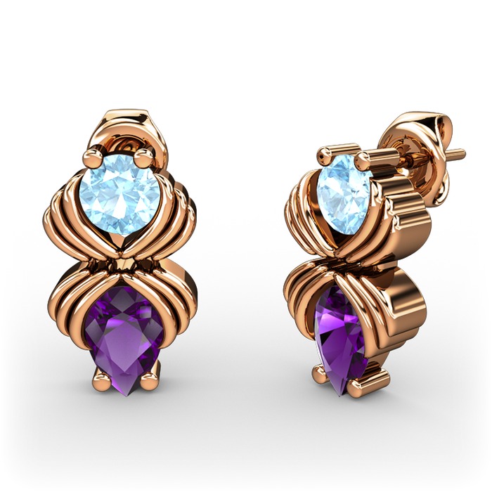 Ametist ve akuamarin 8 ayar rose altın küpe