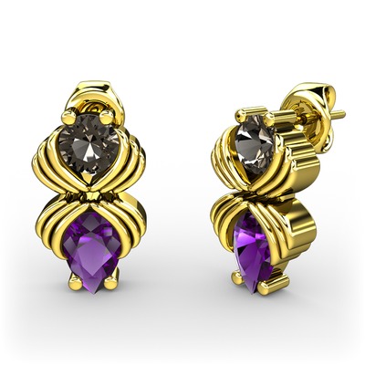 Ametist ve dumanlı kuvars 8 ayar altın küpe