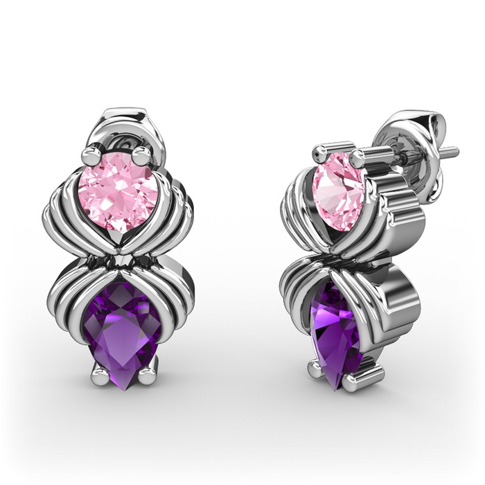 Ametist ve pembe kuvars 925 ayar gümüş küpe