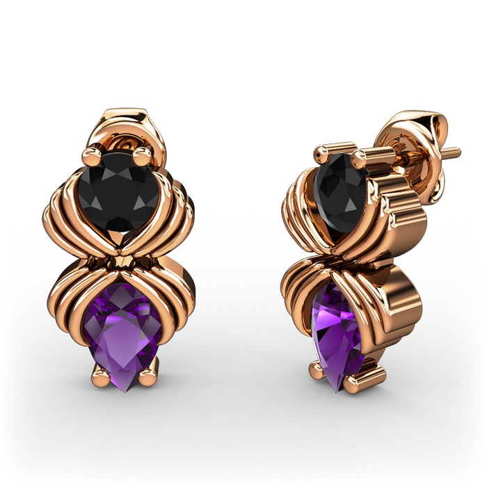 Ametist ve siyah zirkon 925 ayar rose altın kaplama gümüş küpe
