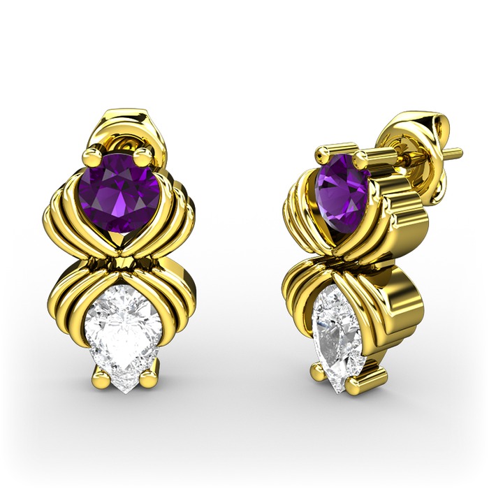 Beyaz zirkon ve ametist 14 ayar altın küpe